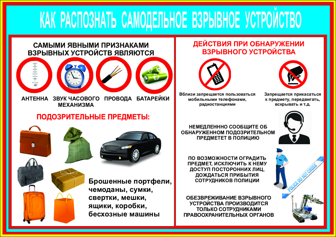 - Действия при обнаружении предмета, похожего на взрывное устройство Смотреть