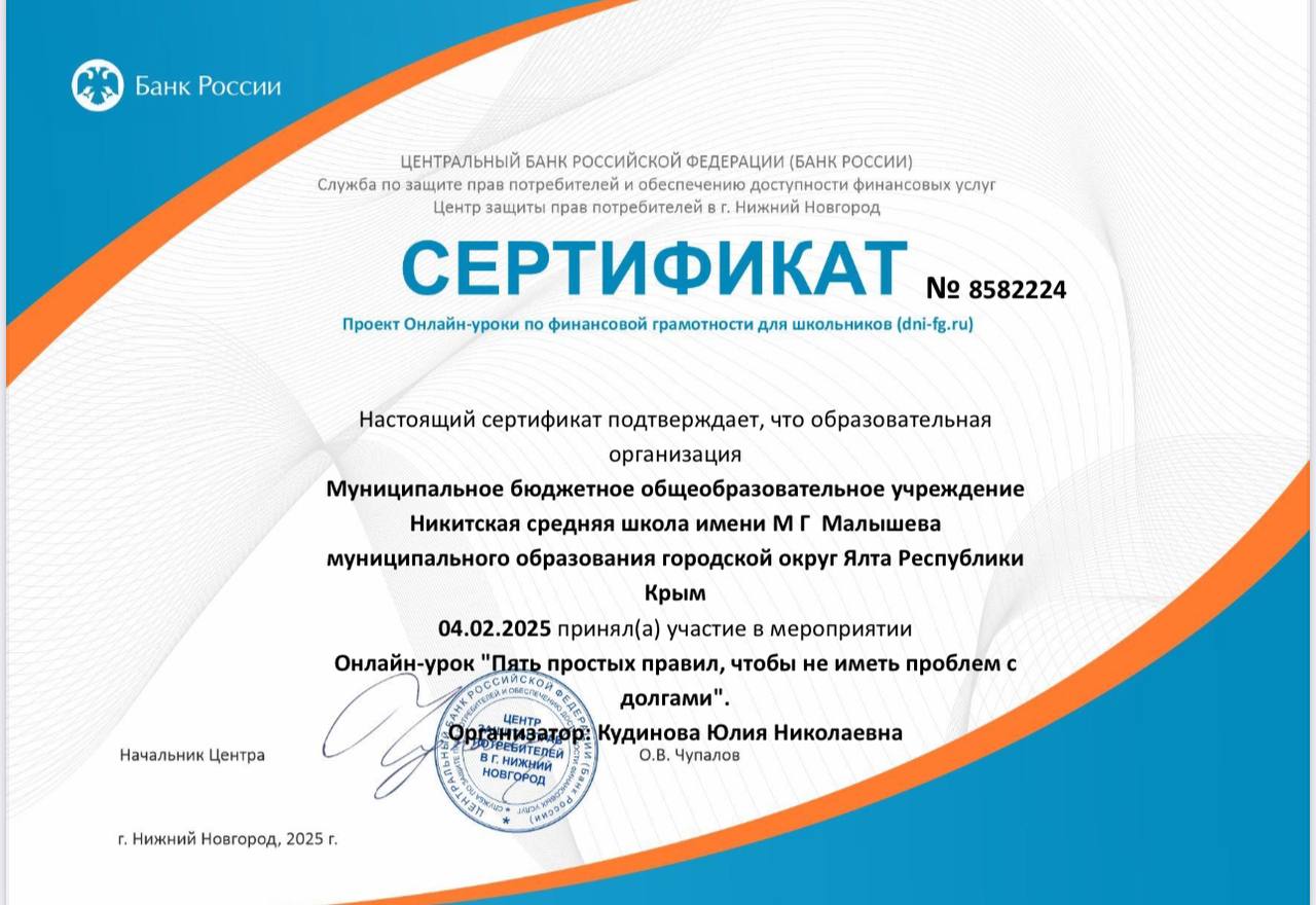 Наши ученики приняли участие в онлайн-уроке Банка России на тему «Пять простых правил, которые помогут не иметь проблем с долгами!»
