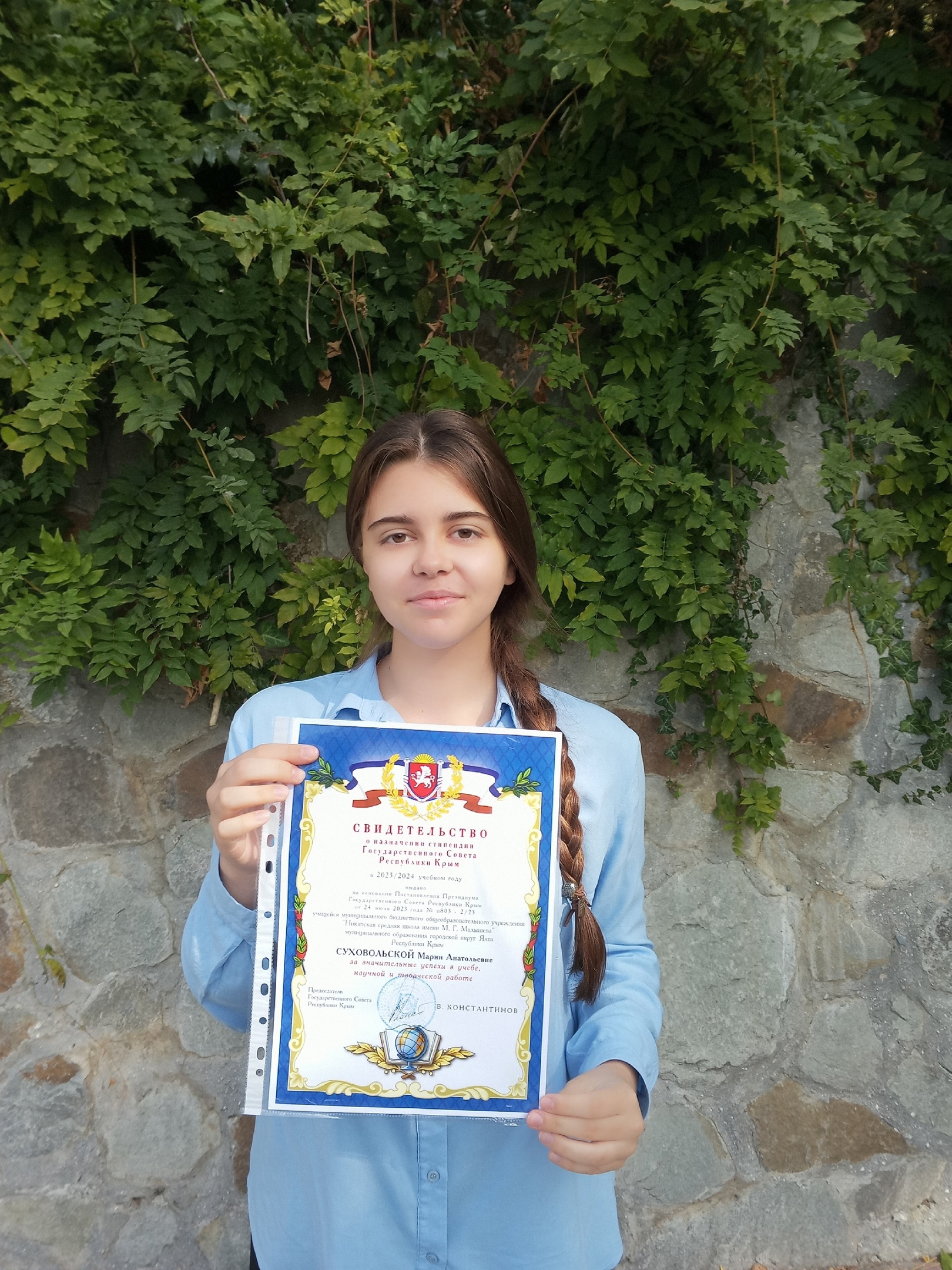 Кандидат на получение стипендии в 2023-2024 учебном году, ученица 11 класса - СУХОВОЛЬСКАЯ МАРИЯ